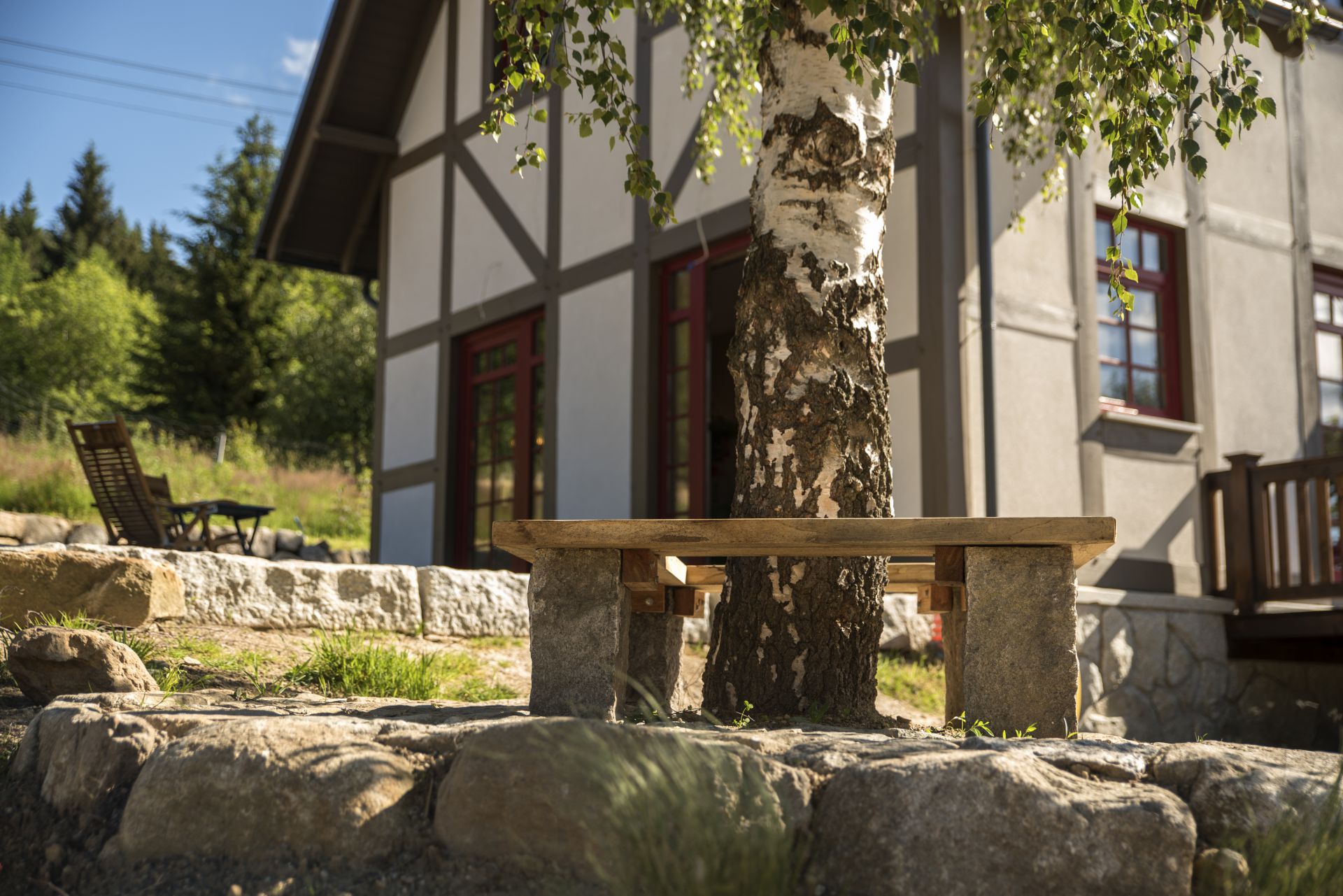 KLON to przestrzeń, w której szlachetne drewno, zieleń i akcenty tradycyjnego designu tworzą atmosferę spokoju i bliskości natury. Duże przeszklenia otwierają wnętrze na otaczający krajobraz Gór Izerskich i Karkonoszy, a funkcjonalne wnętrze idealnie sprawdzi się podczas rodzinnego lub kameralnego wypoczynku.